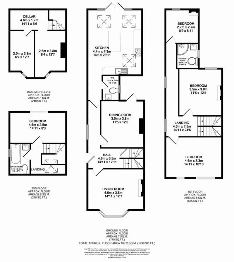 FULL DESCRIPTION Offering well proportioned accommodation over three floors including entrance hall, living room, dining/family room leading through to the kitchen equipped with built in appliances including dishwasher and access to the rear garden. Basement with good sized rooms ideal for storage. First floor has two double bedrooms, single bedroom and shower room. Top floor double with ensuite bathroom.